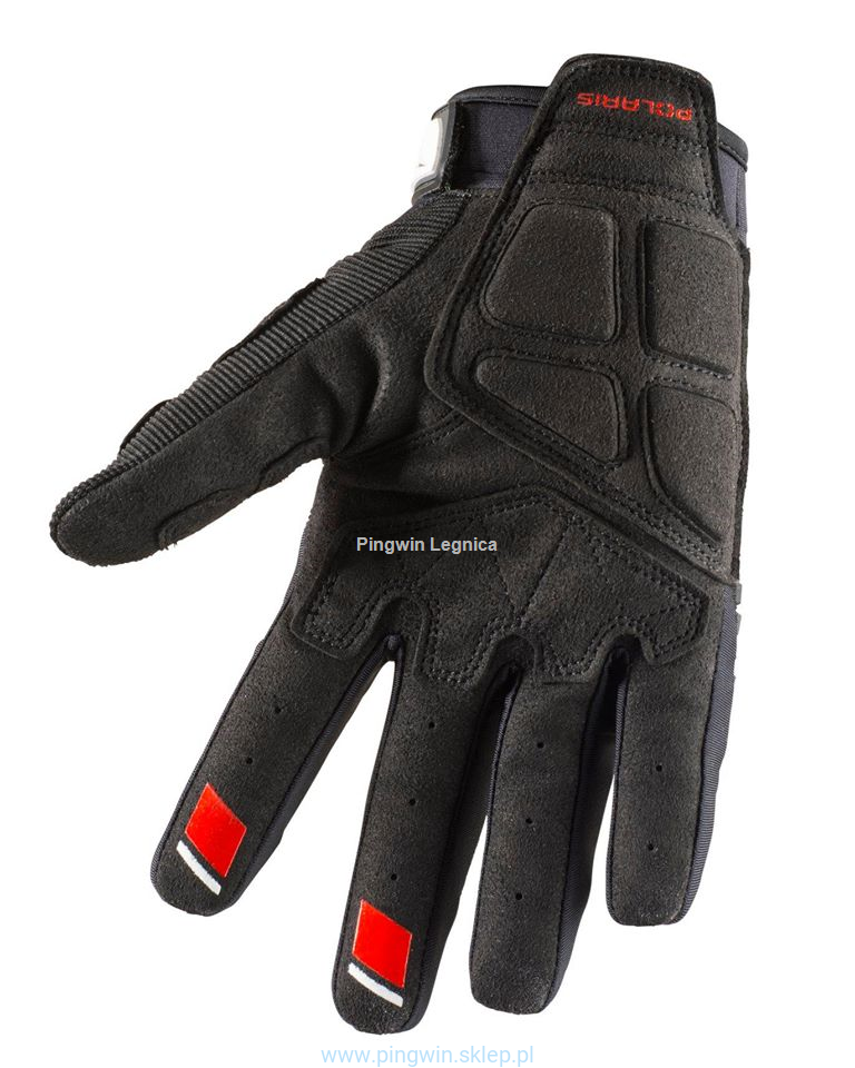 Wnętrze dłoni ze skóry syntetycznej z silikonowym nadrukiem zapewnia pewny chwyt, gdy jest najbardziej potrzebny