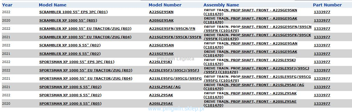 Wał Prop shaft Polaris przód S 1333977